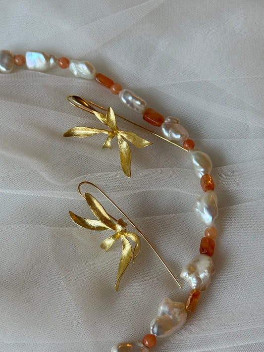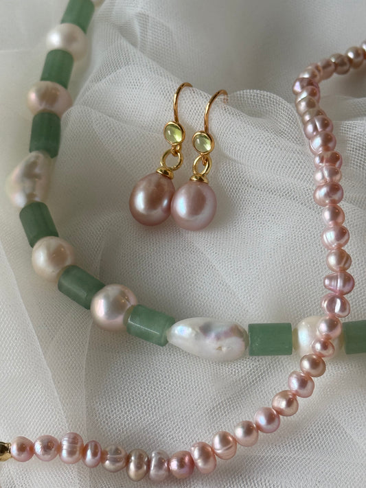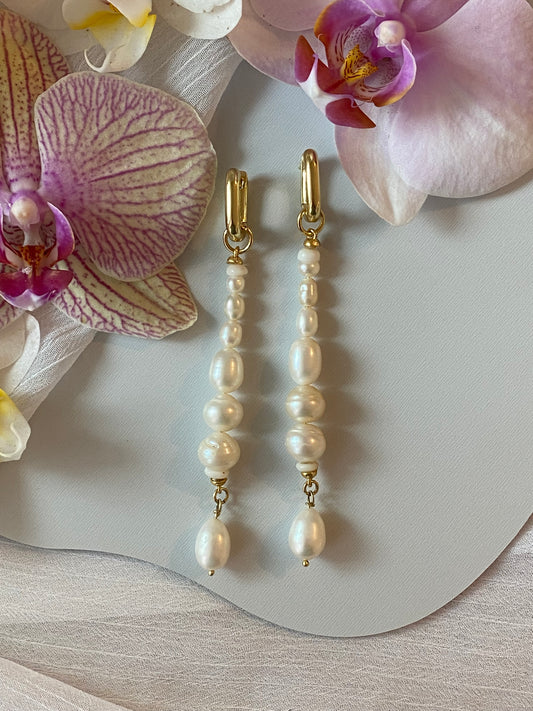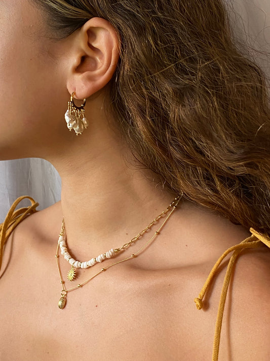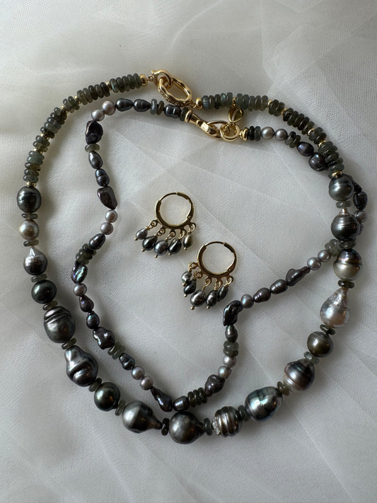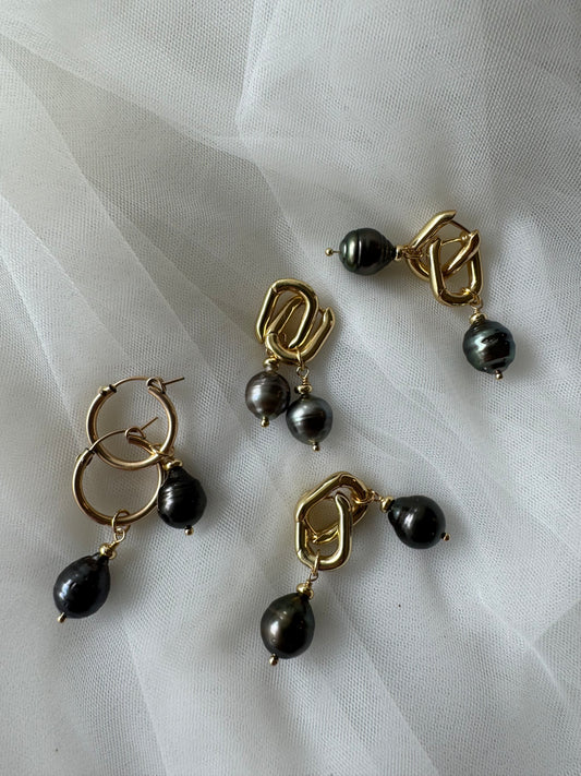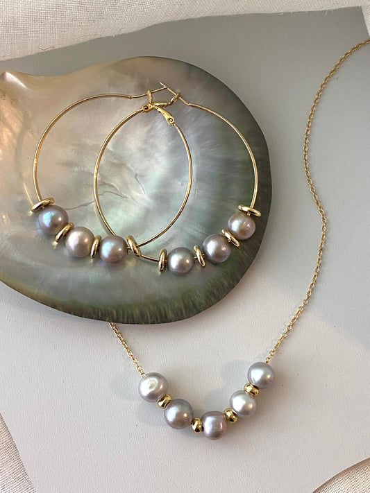Mini Paperclip Hoop- Light Grey Keshi Pearl
