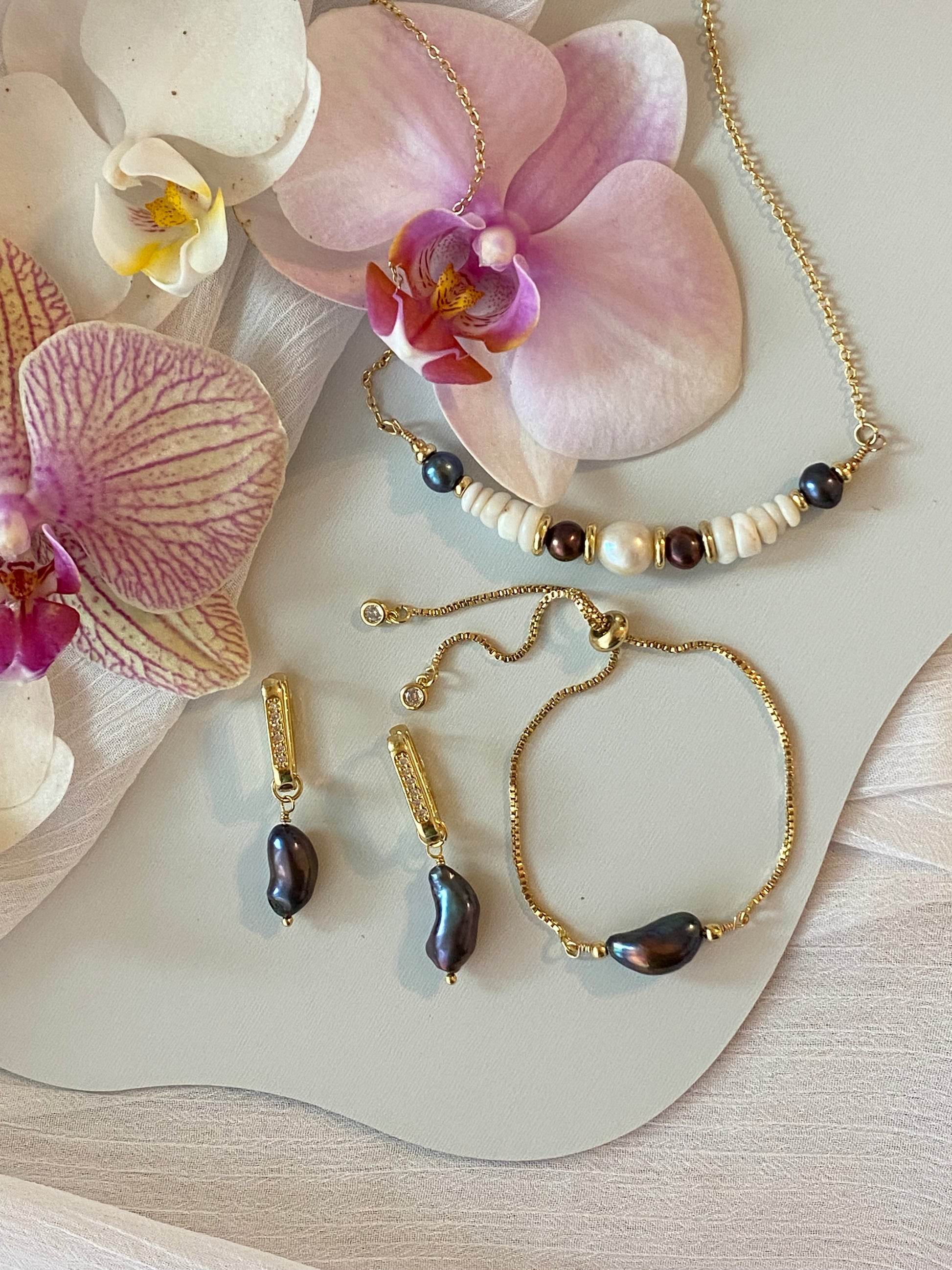 Pavé Paperclip Hoop- Dark Keshi Pearl